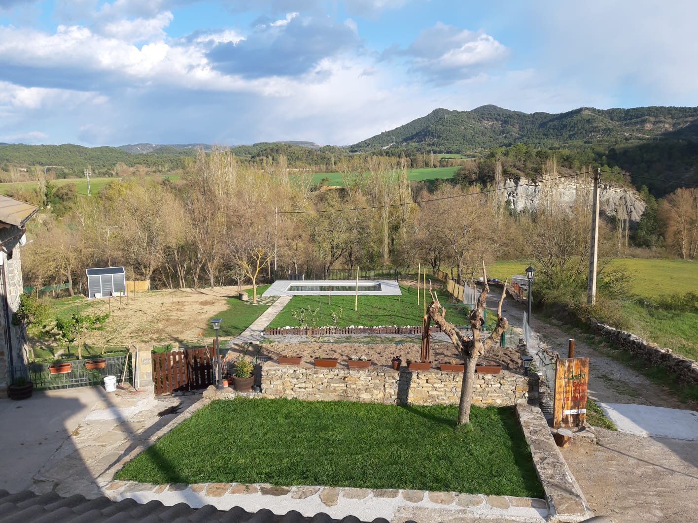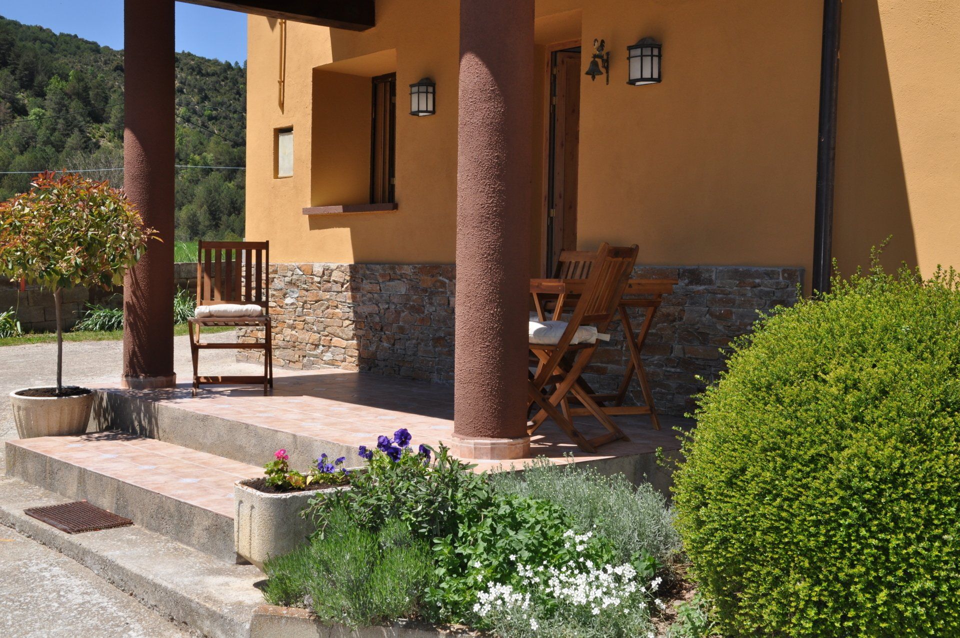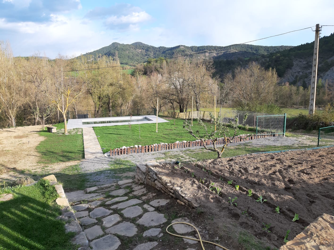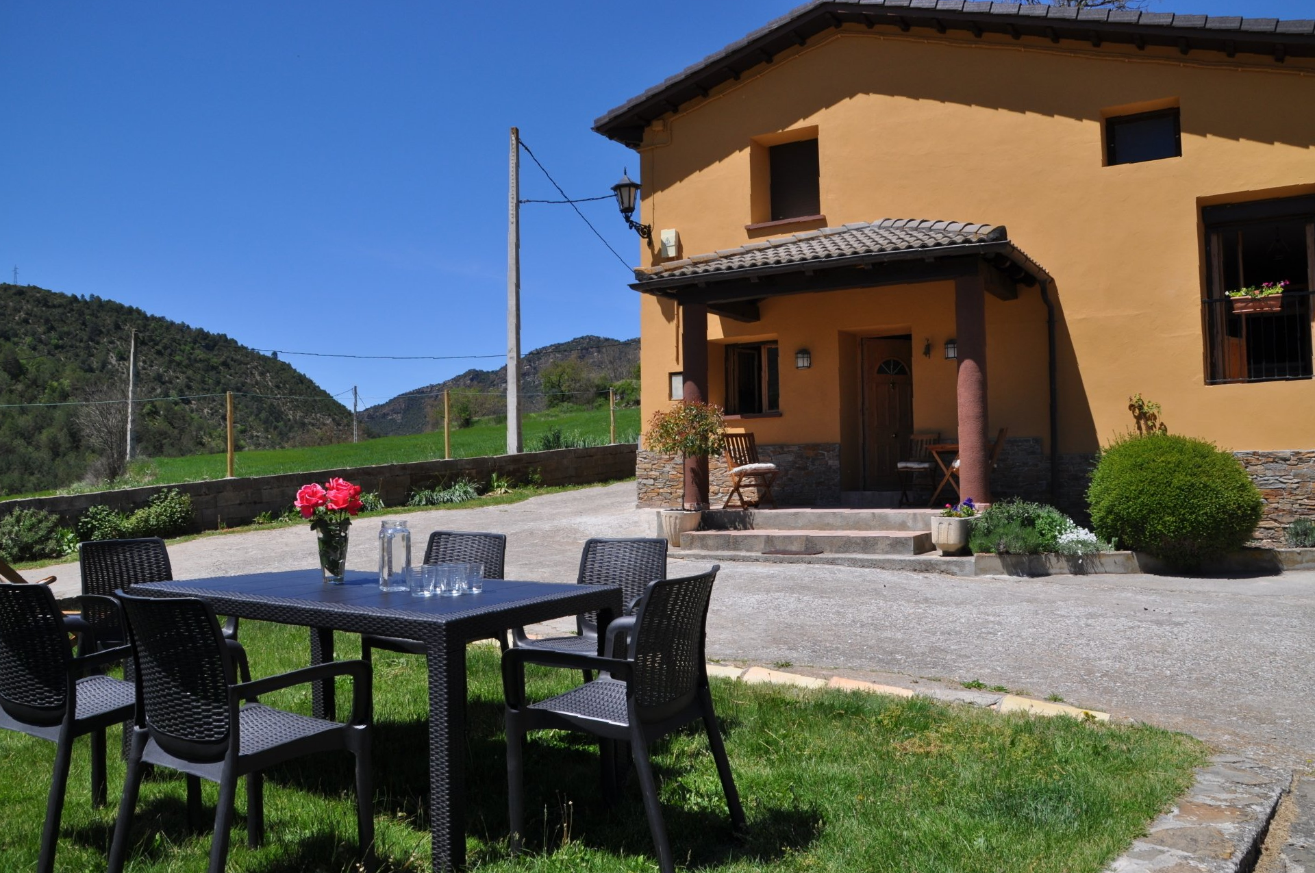 Nuestra casa se encuentra apartada del resto de las casas de la aldea, a 100 metros del río Usía (con poco caudal que permite bañarse y refrescarse sin peligro) lo que le confiere un encanto especial y exclusivo con zona para los vehículos, jardín, piscina (8x4m), campo de frutales, cepas y un pequeño huerto que trabajan los propietarios. Rodeada por sus cuatros costados por la naturaleza y los campos, con buenas vistas del valle de la Fueva y de otras aldeas y pueblos como Troncedo, Rañín o Morillo de Monclús.