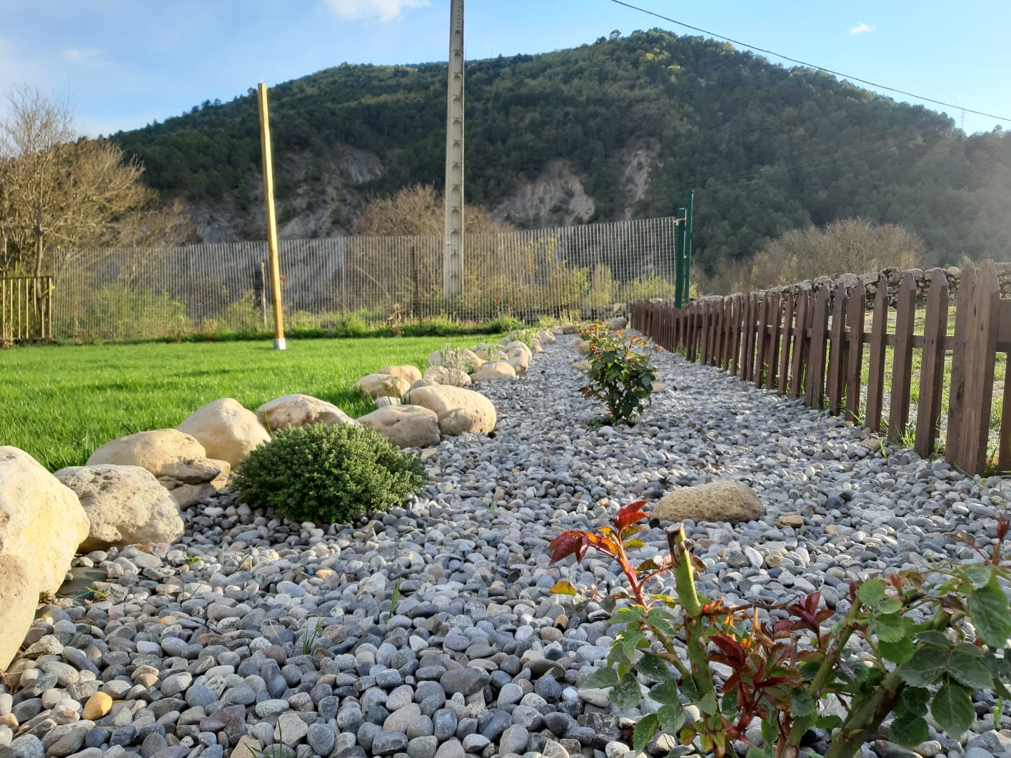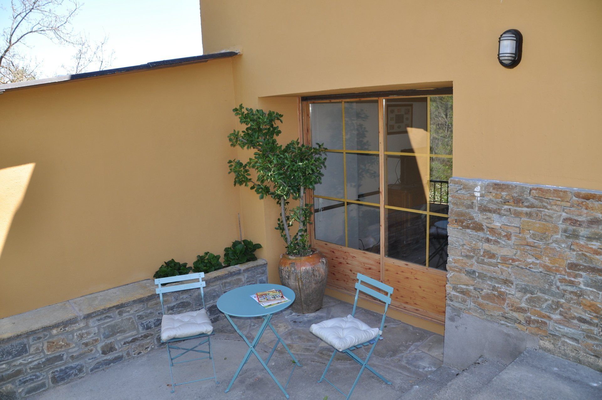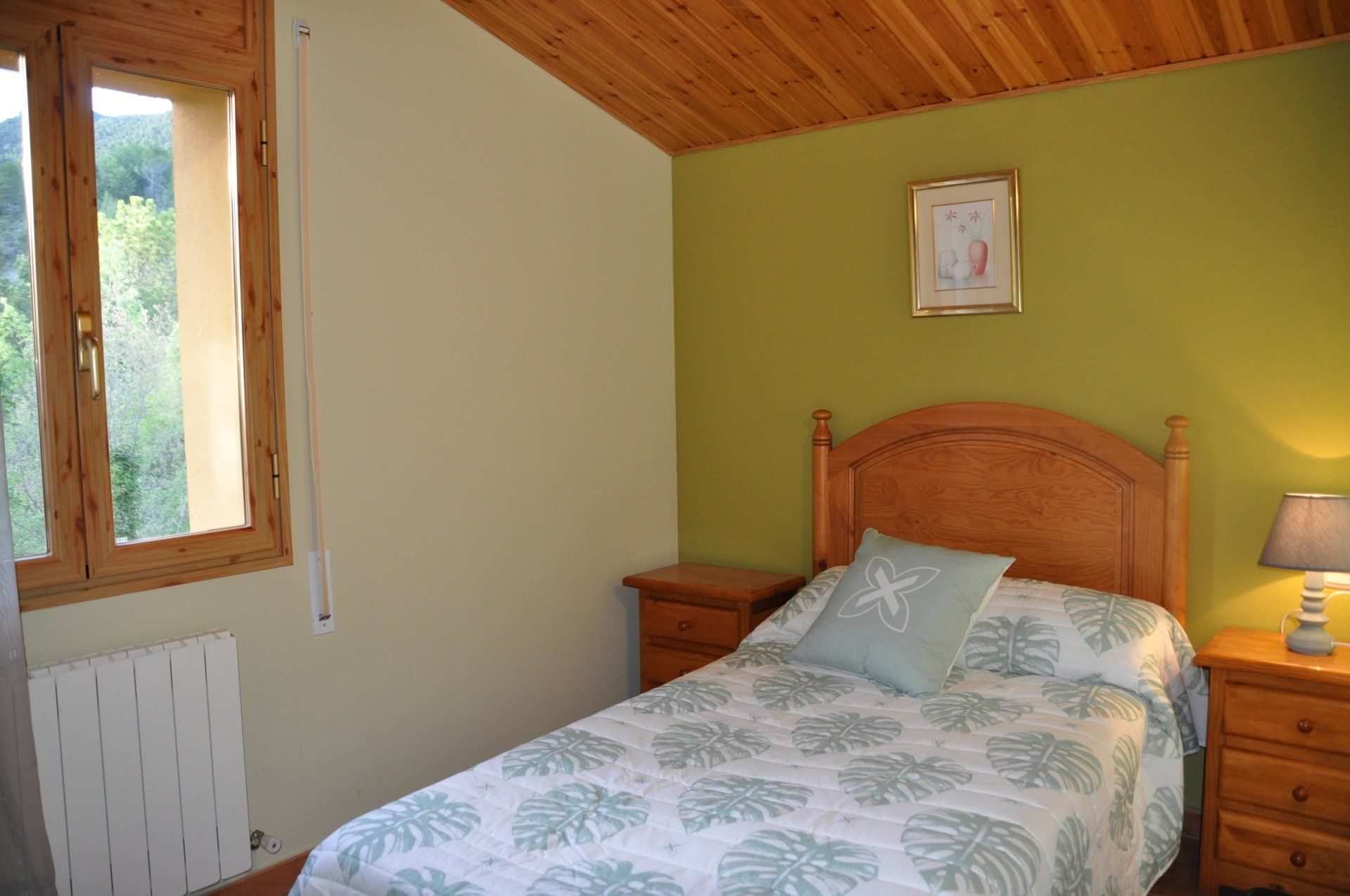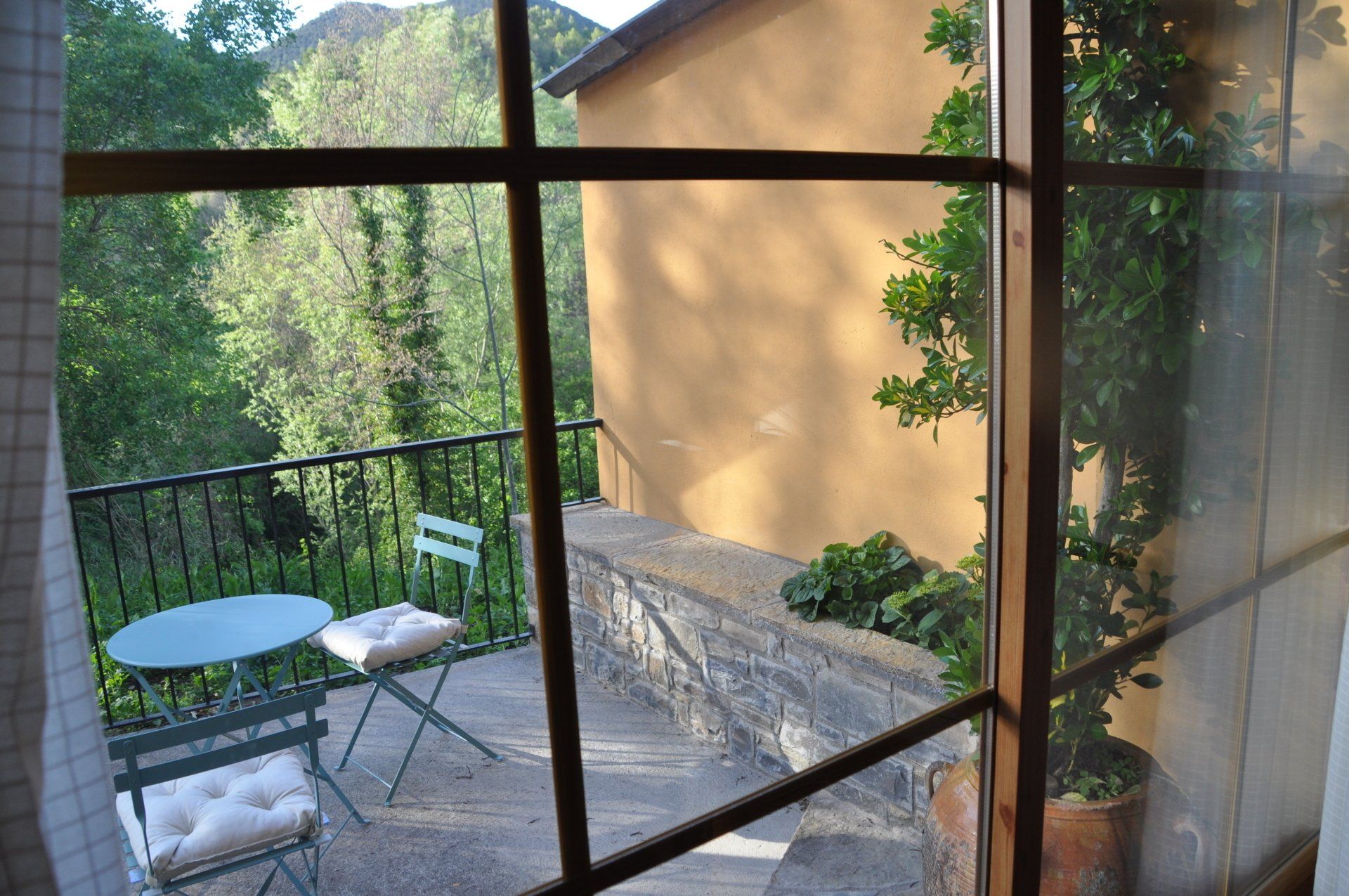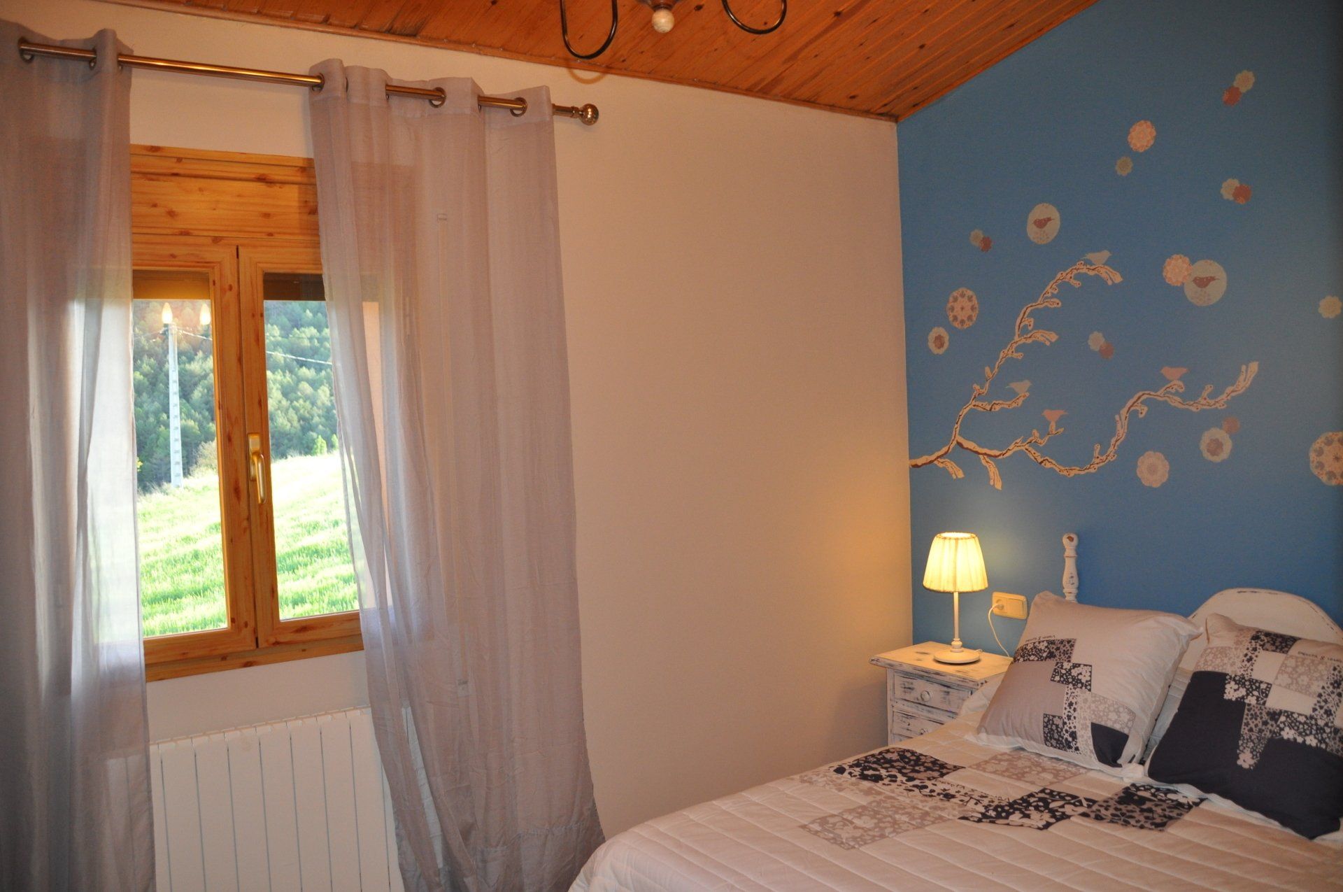 Nuestra casa se encuentra apartada del resto de las casas de la aldea, a 100 metros del río Usía (con poco caudal que permite bañarse y refrescarse sin peligro) lo que le confiere un encanto especial y exclusivo con zona para los vehículos, jardín, piscina (8x4m), campo de frutales, cepas y un pequeño huerto que trabajan los propietarios. Rodeada por sus cuatros costados por la naturaleza y los campos, con buenas vistas del valle de la Fueva y de otras aldeas y pueblos como Troncedo, Rañín o Morillo de Monclús.
