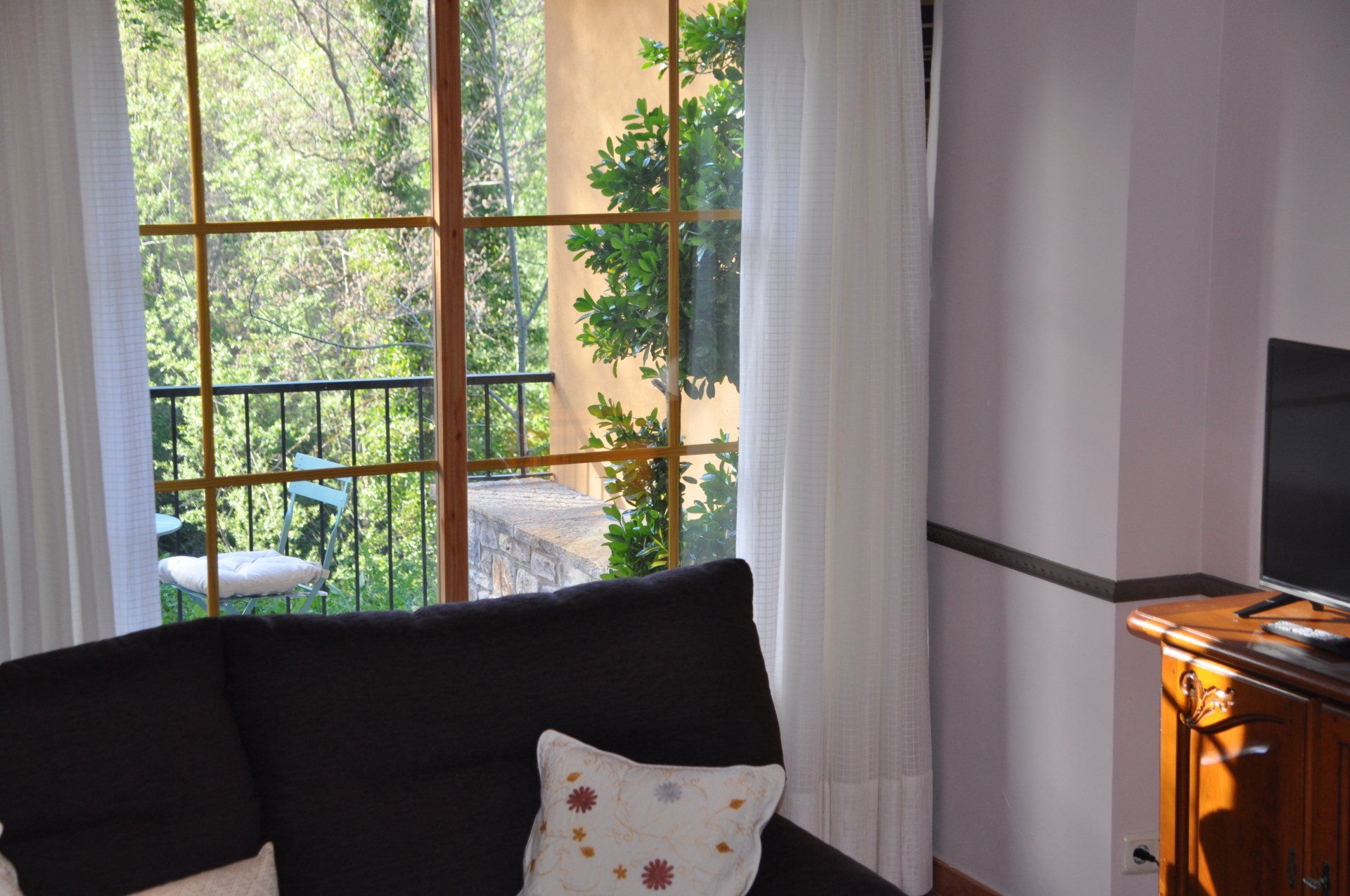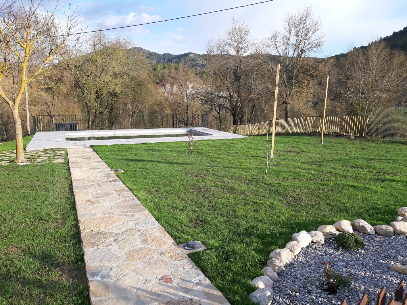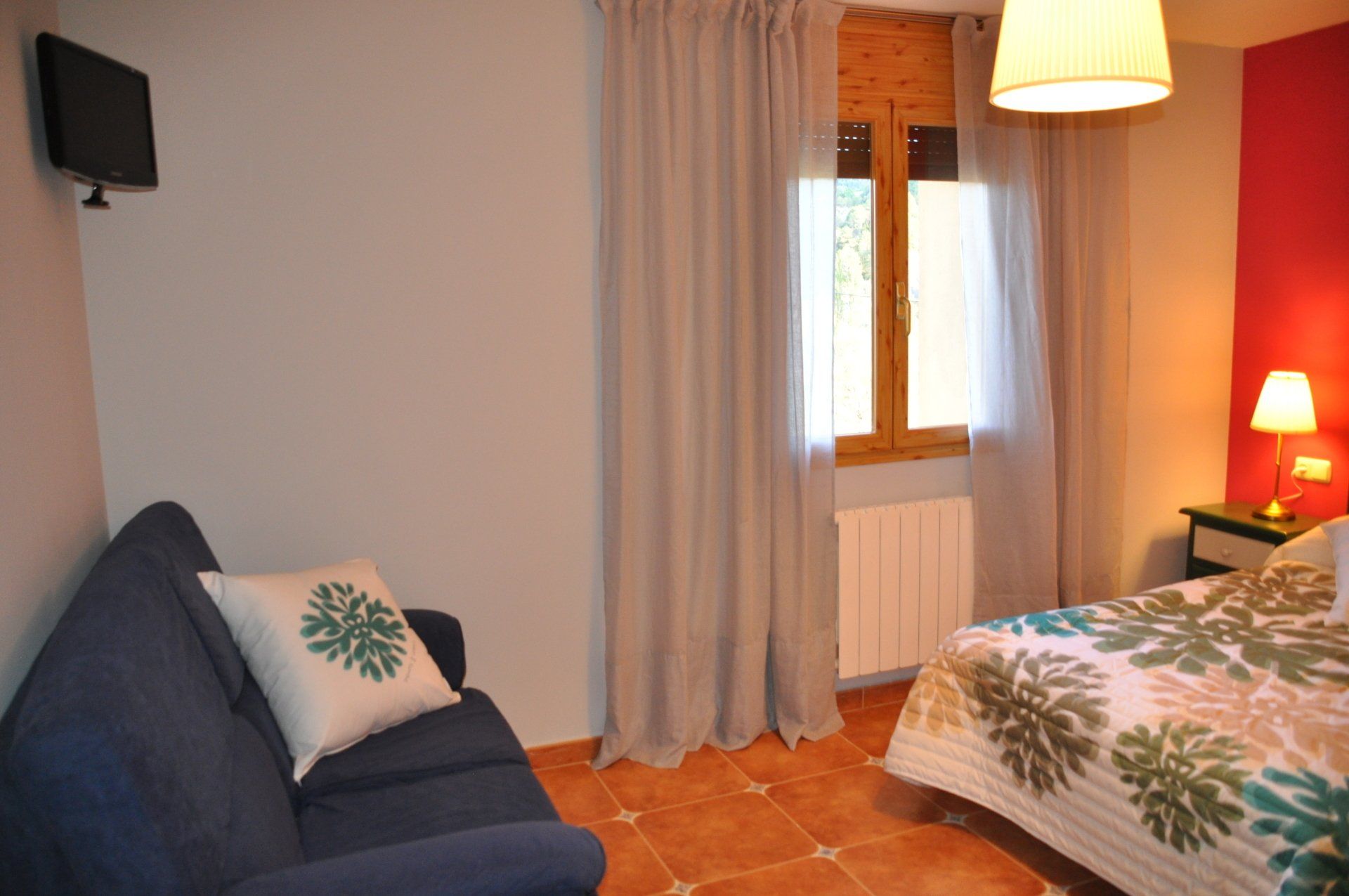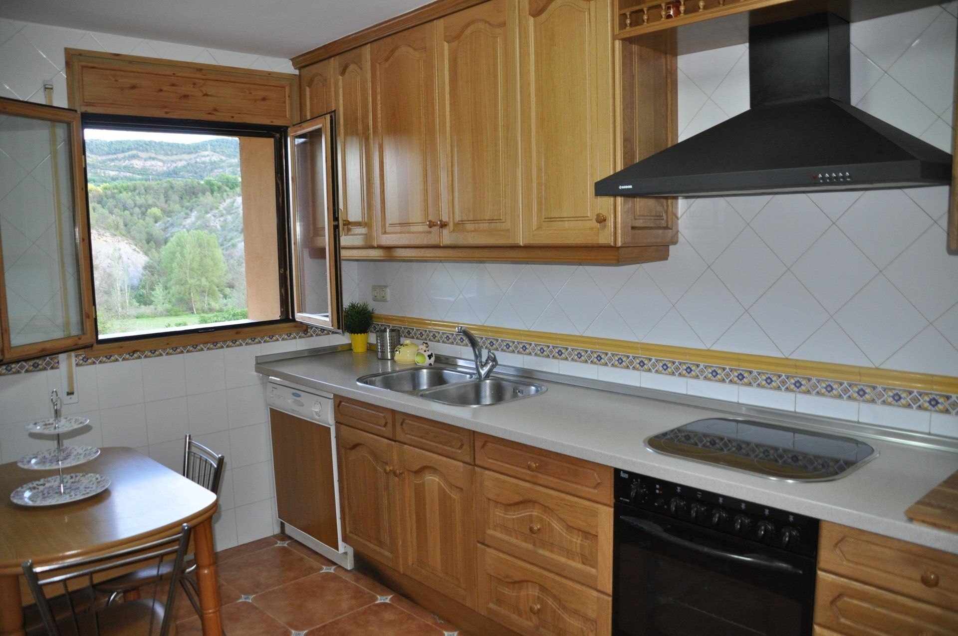 Nuestra casa se encuentra apartada del resto de las casas de la aldea, a 100 metros del río Usía (con poco caudal que permite bañarse y refrescarse sin peligro) lo que le confiere un encanto especial y exclusivo con zona para los vehículos, jardín, piscina (8x4m), campo de frutales, cepas y un pequeño huerto que trabajan los propietarios. Rodeada por sus cuatros costados por la naturaleza y los campos, con buenas vistas del valle de la Fueva y de otras aldeas y pueblos como Troncedo, Rañín o Morillo de Monclús.