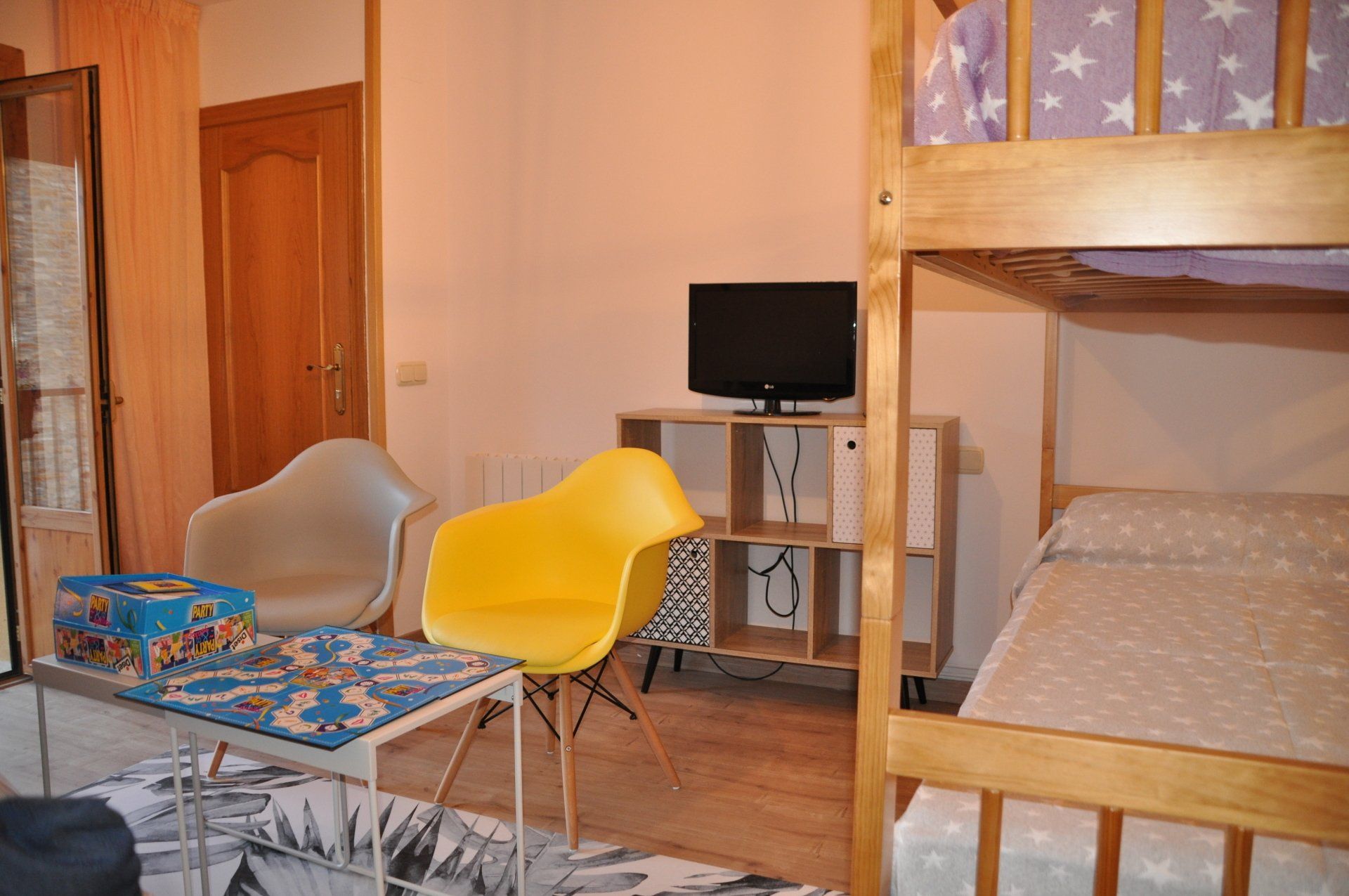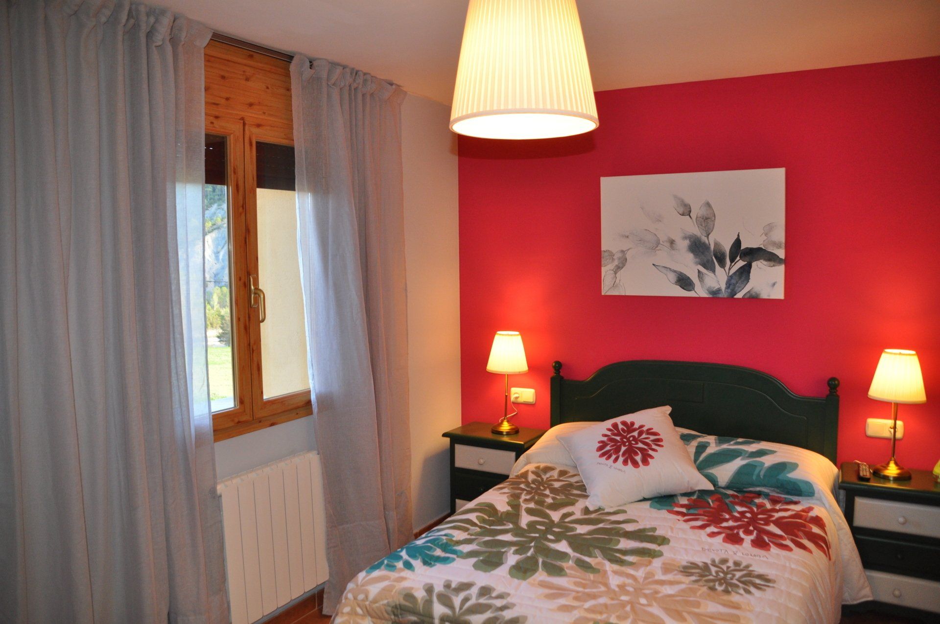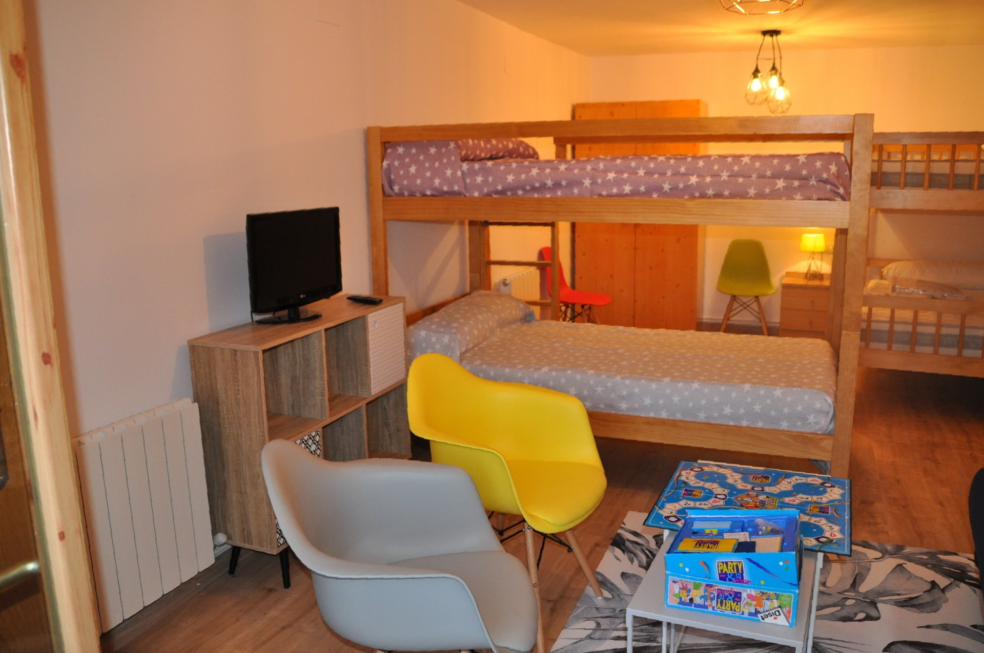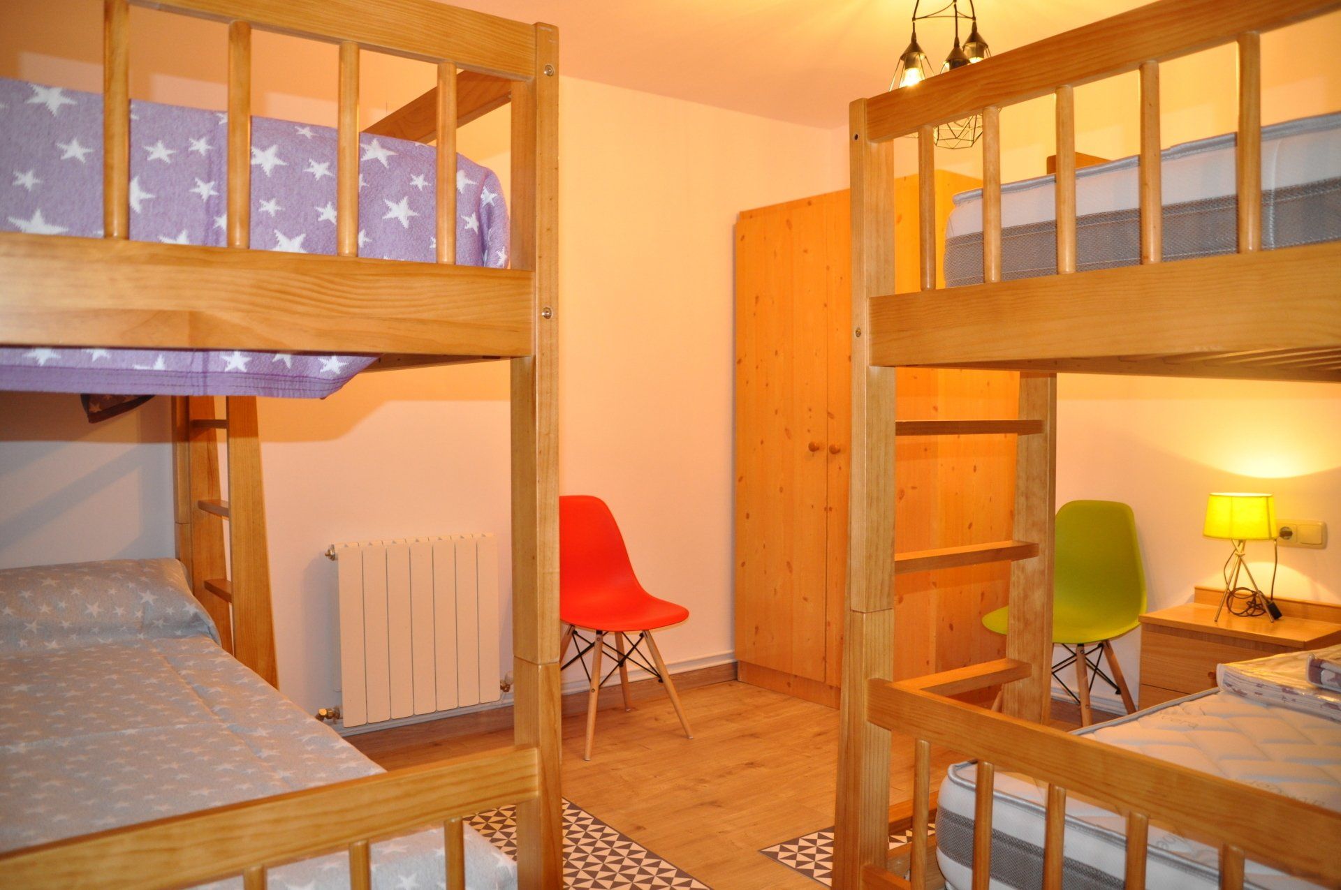 La familia Campo ha rehabilitado la casa familiar de una manera práctica y funcional distribuyendo la casa en dos alturas, en la planta calle se encuentran las estancias comunes, cocina completa, baño completo y salón-comedor con chimenea, mientras que en la primera planta, se localiza la zona más privada con las habitaciones; 3 habitaciones dobles con cama de matrimonio, 1 habitación individual y una habitación especial pensada para los jóvenes del grupo.